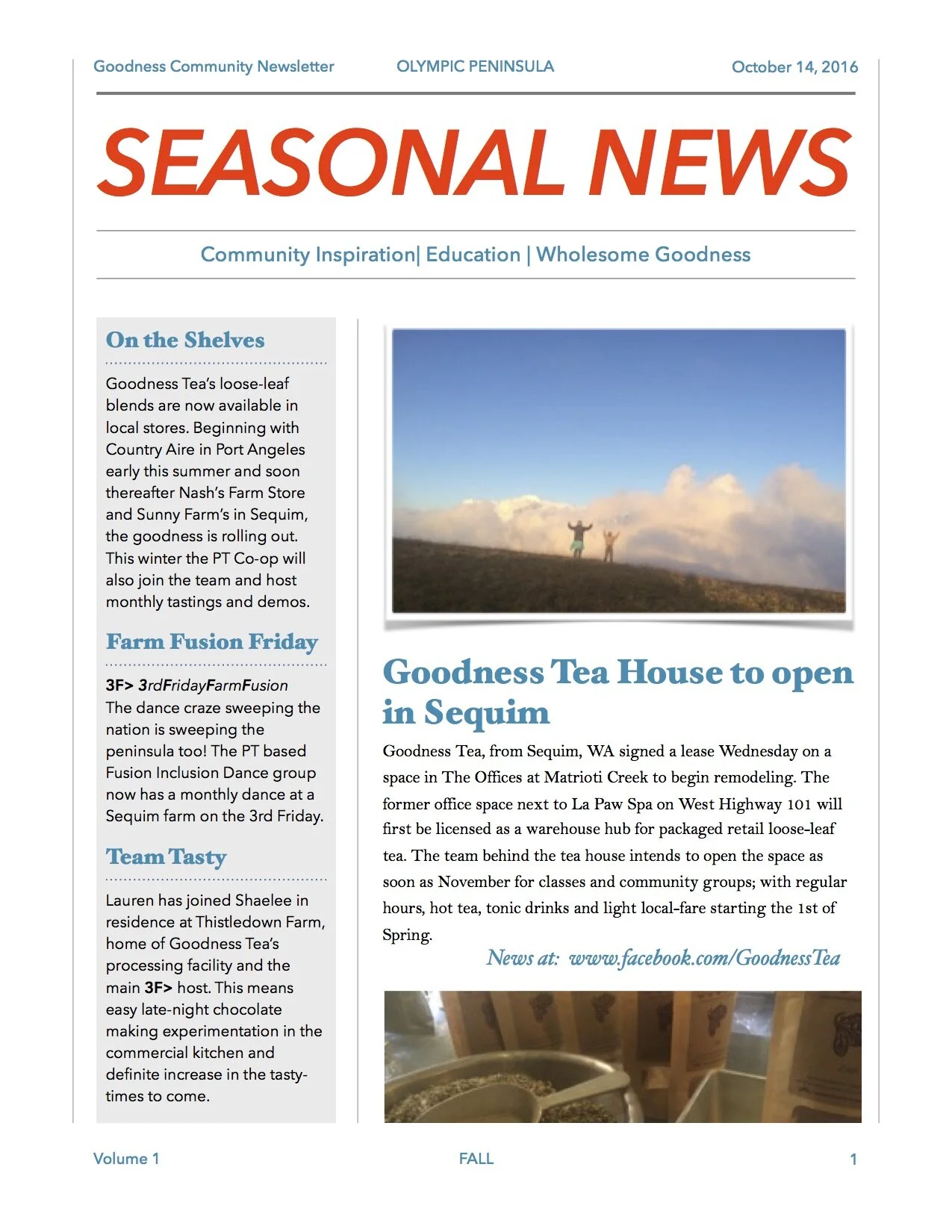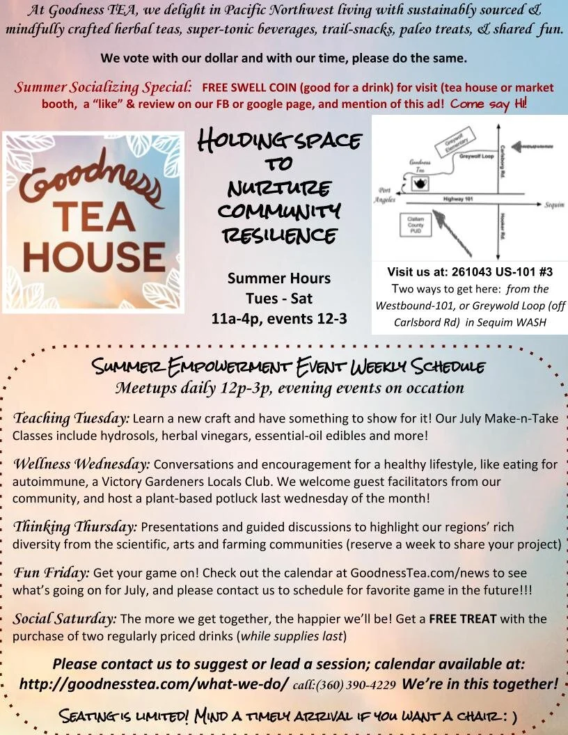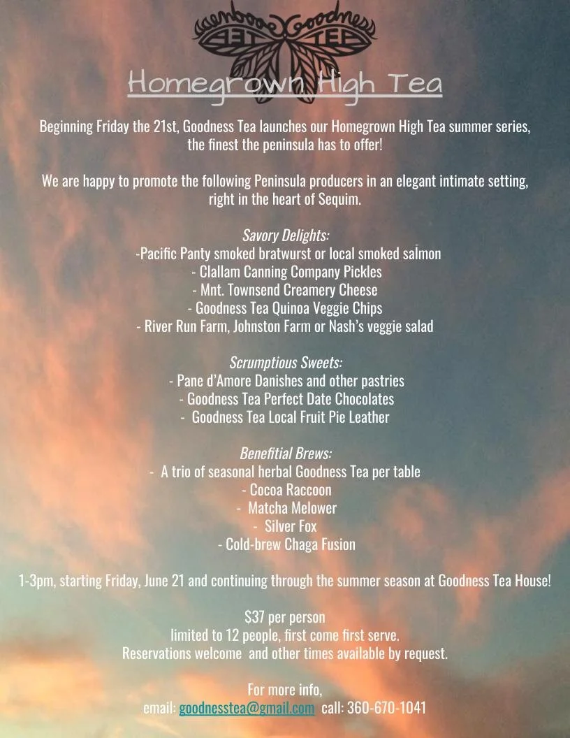 Chronicles of Goodness tea farm Archives Botanicals Farm Life History Inspiration Our Tea Blends Social Justice Archives Shaelee Evans 4/21/21 Archives Shaelee Evans 4/21/21 Mother's Love Tea Read More Archives Shaelee Evans 1/8/21 Archives Shaelee Evans 1/8/21 Have a Tea-RRific Winter! Read More Archives Shaelee Evans 9/25/19 Archives Shaelee Evans 9/25/19 After-School Fine Art Classes Read More Archives Shaelee Evans 6/5/19 Archives Shaelee Evans 6/5/19 Homegrown High Tea Summer Series Read More Archives Shaelee Evans 12/24/18 Archives Shaelee Evans 12/24/18 Goodness Tea House Office Share! Read More Archives Shaelee Evans 10/25/18 Archives Shaelee Evans 10/25/18 Peninsula Greetings Read More Archives Shaelee Evans 7/2/18 Archives Shaelee Evans 7/2/18 Summer Socializing Schedule, & free drinks via Swell Coin! Read More Archives Shaelee Evans 4/27/18 Archives Shaelee Evans 4/27/18 Bring your Basil to work Day Read More Archives Shaelee Evans 4/24/18 Archives Shaelee Evans 4/24/18 The more we get together... Read More Archives Shaelee Evans 2/8/18 Archives Shaelee Evans 2/8/18 Goodness Tea House is OPEN! Read More Archives Shaelee Evans 11/20/17 Archives Shaelee Evans 11/20/17 Goodness Tea House Read More Archives Shaelee Evans 11/12/16 Archives Shaelee Evans 11/12/16 A New Season Has Really Come Read More Archives Shaelee Evans 9/9/16 Archives Shaelee Evans 9/9/16 My oh my! Local Stores, Webstore and Retail Store! Read More Archives Shaelee Evans 4/20/16 Archives Shaelee Evans 4/20/16 Web store is almost up! Read More Archives Shaelee Evans 3/9/16 Archives Shaelee Evans 3/9/16 Sequim Farmer's Market! Read More Archives Shaelee Evans 1/13/16 Archives Shaelee Evans 1/13/16 Tea Party! Read More Archives Shaelee Evans 1/4/16 Archives Shaelee Evans 1/4/16 Winter Market Read More Archives Shaelee Evans 9/24/15 Archives Shaelee Evans 9/24/15 Gotta keep that forward momentum! Read More Older Posts